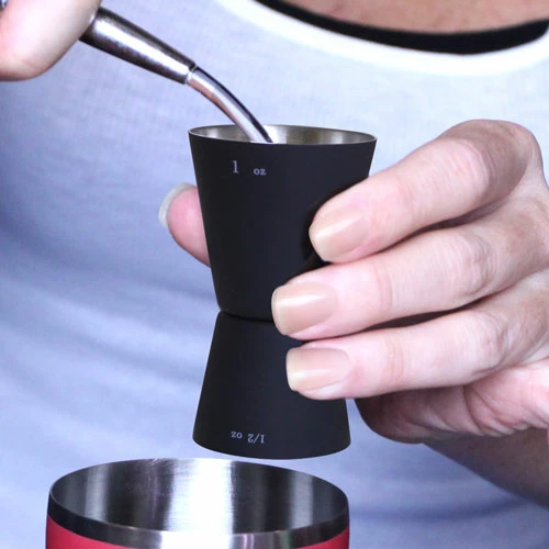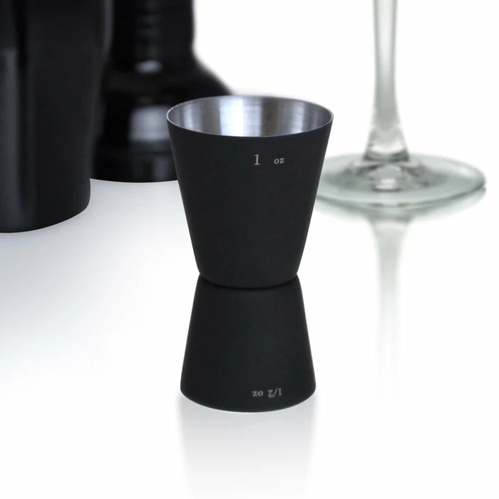 Too little or too much of any ingredient can alter and ruin the flavor of a mixed drink. Being accurate when pouring cocktails is an absolute must. Now you can mix and create the perfect cocktail with this Black Matte Cocktail Jigger. Both sides of this beautifully crafted jigger have been created to measure. The small side measures a 1/2 oz., and the large side measures 1 oz. The classic style and contemporary functionality of this Black Matte Cocktail Jigger makes it the optimal component for your set of master bartending tools. Constructed of stainless steel and coated with smooth black matte finish enhances your grip and finger control making this the prime jigger for any novice or professional.