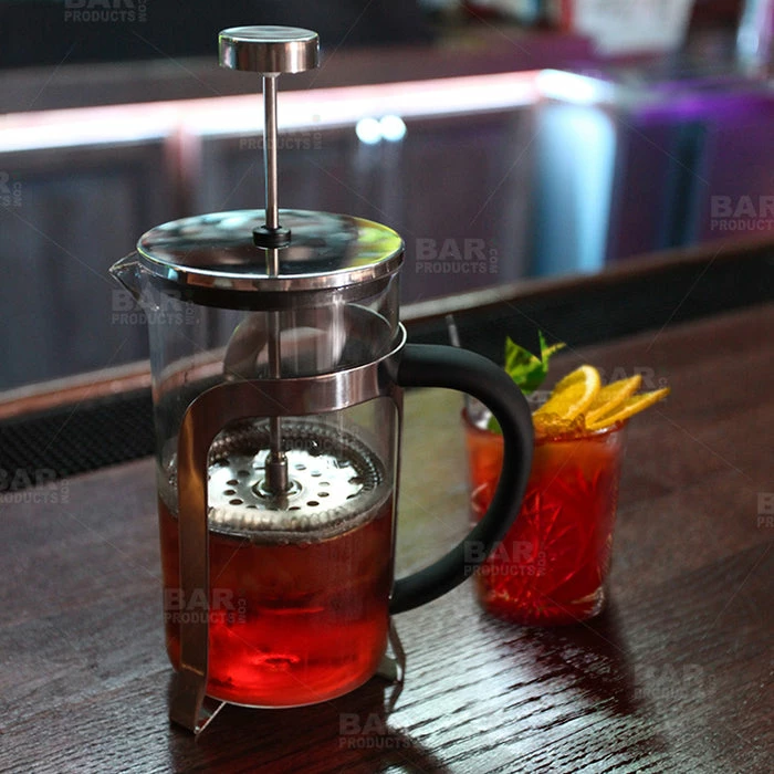 A Cocktail Press is a wonderful new bar tool used to infuse your signature craft cocktails with quality ingredients. Our 1000ml BarConic® Cocktail Press is the perfect choice when pressing different ingredients and can also be used to press teas or coffee. This press features a shatterproof heat-resistant carafe made of borosilicate glass with a stainless steel mesh filter for perfect infusion and filtration. Simply mix or shake your cocktail ingredients together then pour them into the carafe for pressing.