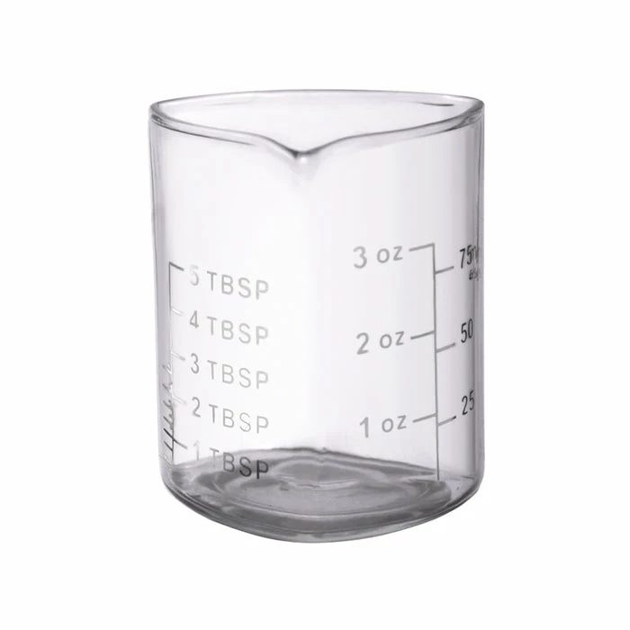 The BarConic® Glass Beaker Jigger is a unique bartending tool intended for the professional bartender or mixologist who appreciates the art of pouring perfectly measured cocktails. The glass beaker is marked with clear measurements in ounces (up to 3 ounces), milliliters (up to 75 mL) and tablespoons (up to 5 TBSP). The beaker is formed into a unique rounded triangle shape, truly setting this bar tool apart from other measuring tools. The addition of the TBSP measurements are popular for use in master mixology to emulate the bar spoon measurements.