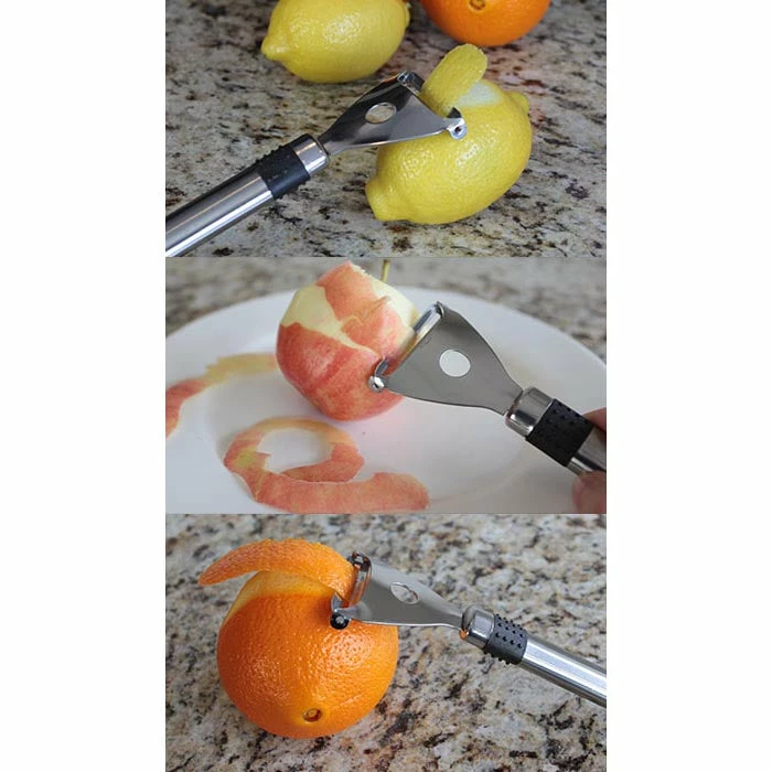 The BarConic® Stainless Steel & Black Y Peeler with Black Grip Band is an ergonomic, contemporary tool for peeling vegetables and fruits of all types. Ideal for home, restaurant, and bartending uses, this handy peeler is simple to use and clean up.