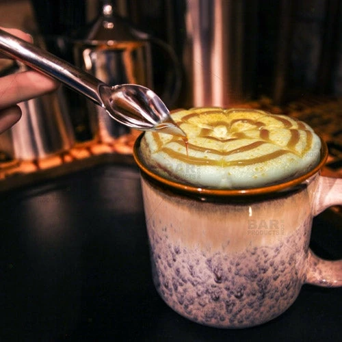 Decorating Spoons are a wonderful alternative to squeeze bottles when it comes to garnishing and decorative plating for beautiful entrees or desserts. Use these spoons to add a special touch to hot or cold cafรฉ beverages and coffee cocktails with drizzles of chocolate or caramel. This Decorating Spoon Set comes with two decorating spoons, one small and one large, each constructed of strong stainless steel. Where pastry bags and squeeze bottles fall short is in their design. This spoons curved shape and tapered end allow you to quickly change between sauces but simply rinsing the spoon and moving onto the next.