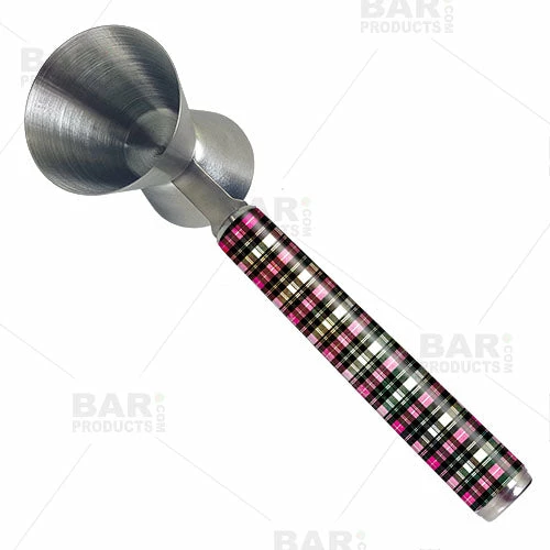Easy to clean and durable, this sanitary handled jigger is growing in popularity. Bartenders, as well as home bar enthusiasts are loving the utility it offers. Now with this fun pink and black plaid design, you can add some personality to your drink mixing showmanship.