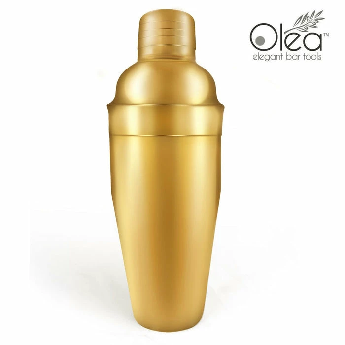 Absolutely exquisite are the perfect words to describe this stunning Gold Plated cobbler style cocktail shaker. One of the first editions to our line of Olea™ Elegant Bar Tools, this 3 piece shaker is every master mixologists and professional bartenders dream bar tool. This high end cocktail shaker is constructed from a durable stainless steel material and then beautifully plated with a reflective Gold finish.