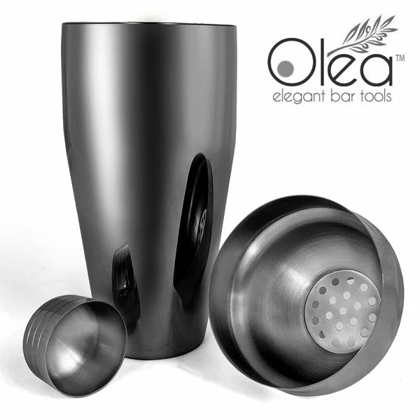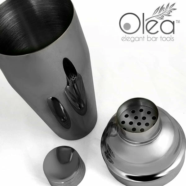 Absolutely exquisite are the perfect words to describe this stunning Gunmetal Plated cobbler style cocktail shaker. One of the first editions to our line of Olea™ Elegant Bar Tools, this 3 piece shaker is every master mixologists and professional bartenders dream bar tool. This high quality piece is constructed from a durable stainless steel material and then beautifully plated with a reflective Gunmetal finish.