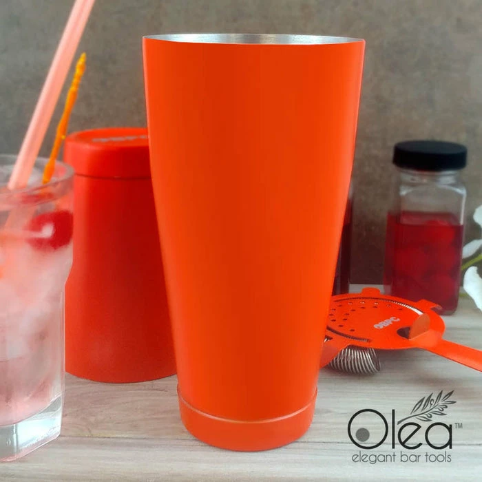 This gorgeous professional cocktail shaker measures 28 ounces and stands7″ tall. 28 ounce shakers are very commonly used with many modern mixology recipes and are a must-have bar tool in the professional bartending industry. They are typically used in conjunction with a 16 ounce shaker tin or a standard mixing glass, allowing for a larger and well sealed shaking capacity. The stainless steel walls provide the perfect environment for obtaining the ultimate chill to your cocktail as the material reacts to the ice within once the shaking process is ignited. If style and class are things you like to incorporate into your mixology skills, then this exquisite metallic orange cocktail shaker is perfect to add to your bar tool lineup. Not DIshwasher Safe