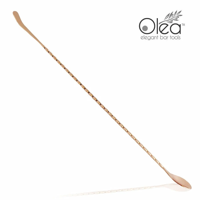 “Absolutely stunning” are the perfect words to describe this gorgeous Copper Plated “Bent Tip” Bar Spoon. One of the first editions to our line of Olea™ Elegant Bar Tools, this bar spoon is every master mixologists and professional bartenders dream bar tool. This high quality piece is constructed from a durable stainless steel material and then beautifully plated with a reflective copper finish.