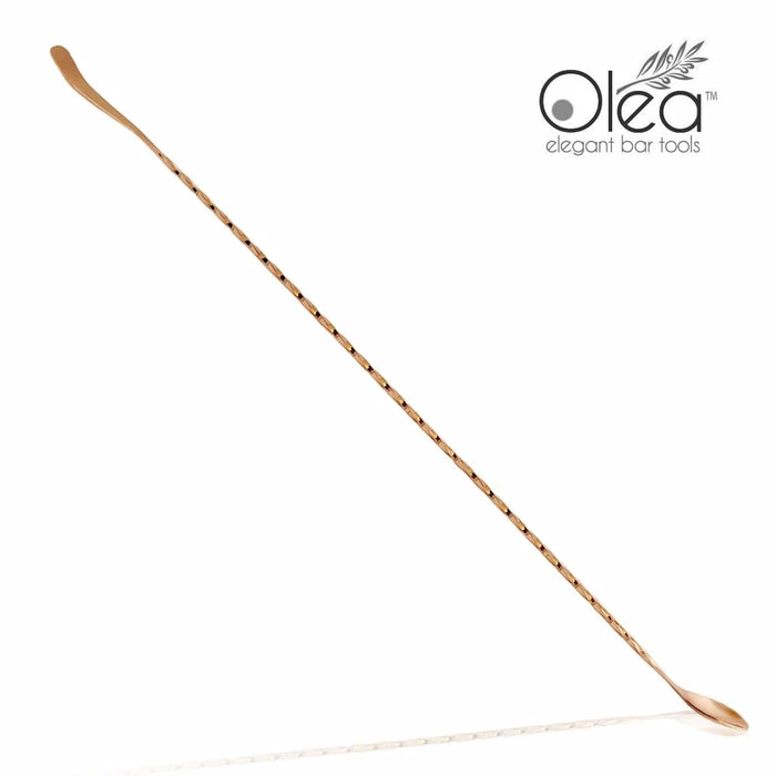 “Absolutely stunning” are the perfect words to describe this gorgeous Copper Plated “Bent Tip” Bar Spoon. One of the first editions to our line of Olea™ Elegant Bar Tools, this bar spoon is every master mixologists and professional bartenders dream bar tool. This high quality piece is constructed from a durable stainless steel material and then beautifully plated with a reflective copper finish.