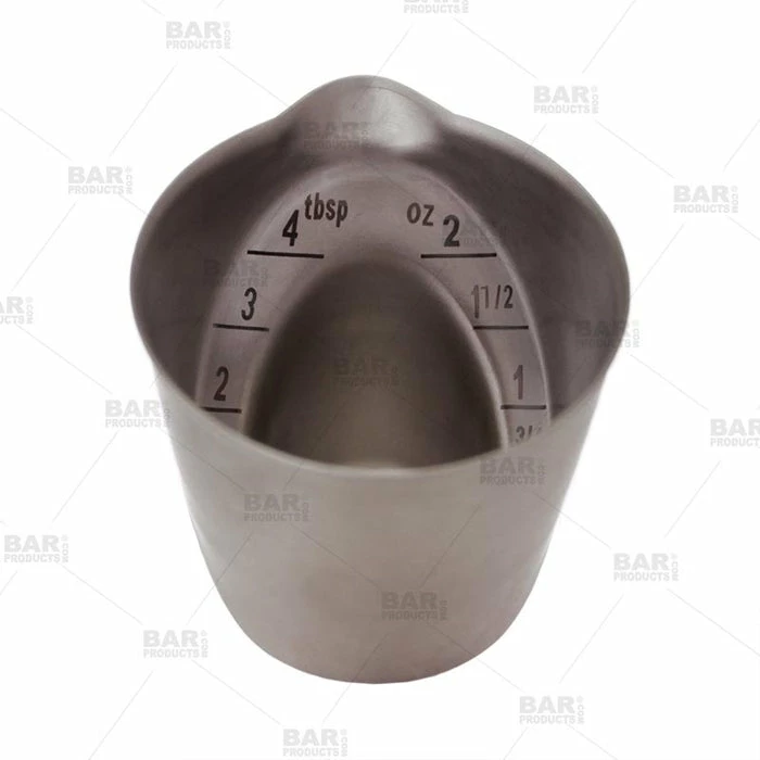 With a patented angled surface, the OXO Angled Measuring Jigger allows you to see measurement markings while looking straight down into it, so you don’t have to hold it up to eye level or bend down to read markings on the side. Includes markings for measuring in both ounces and tablespoons.