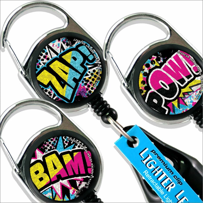 The Premium Clip Lighter Leash® is a favorite among many who prefer easy access to their lighter. It features a carabiner style clip that conveniently attaches to your belt loop, purse and many other accessories you tend to wear or keep nearby. It is designed to hold most commonly Bic® Lighters, but will form to many other standard sized lighters as well, such as Clipper® and Winlite®. Its black vinyl lighter holder offers a snug fit around your lighter, keeping it securely in place at all times. When in use, the durable retractable cord reaches out to 36” in length. U.S. PATENT #D539527
