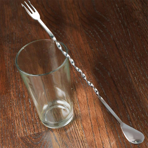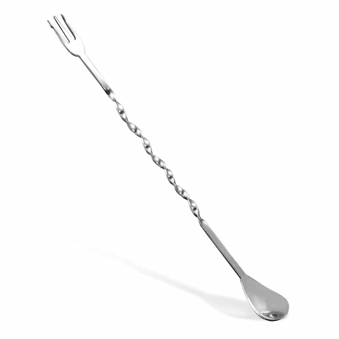This multifunctional trident bar spoon with garnish pick is a hybrid that has tons of use behind your bar. Stir drinks in deep tumblers, layer drinks and cleanly picking up garnishes! The tight coils allow you to spin the spoon easily and results in a colder, more evenly mixed cocktail. The trident on top gives will keep your fruit and garnishes clean and sanitary.